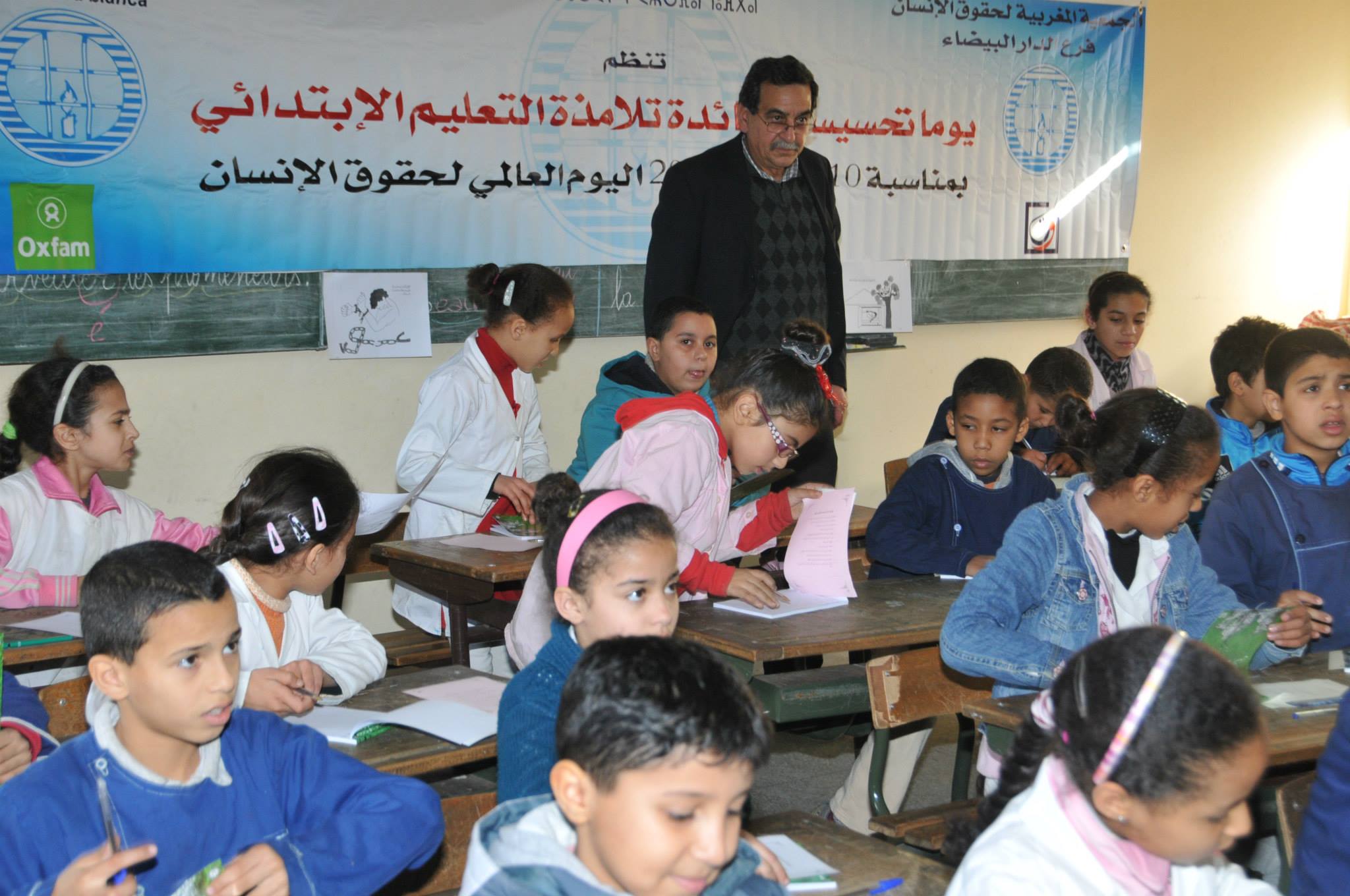 في اطارتفعيل برنامج مشتل لتربية على حقوق الانسان في التعليم الابتدائ نظمت لجنةالتربيةعلى حقوق الانسان بفرع الدارالبيضاءنشاطا تحسيسيابالمدرسةالابتدائية النابغة نيابةالفداءدرب السلطان يوم الجمعة 20دجنبر 2013على الساعة التانيةوالنصف مساءبي تاطير الاستادةسارةجبوراستفادمنه3 3المتعلمين منهم14تلميدةوكان موضوع النشاط هوالتعريف بحقوق الطفل وضرورة التضامن من اجل الدفاع عنها ودلك من خلال عرض شريط ومناقشته