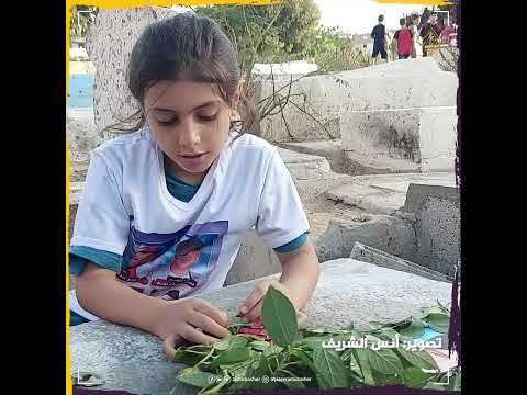 طفلة فلسطينية تحتضن قبر أخيها الذي استشهد خلال العدوان الأخير على غزة
