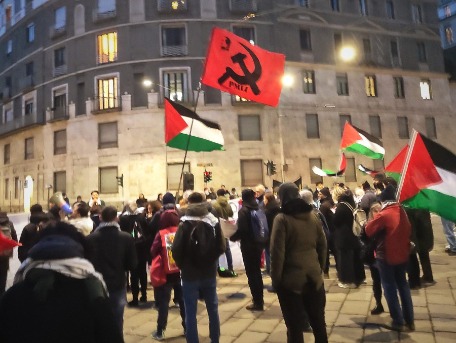 يوم الجمعة 21 فبراير، نُظم اعتصام أمام القنصلية الأمريكية في ميلانو دعمًا لفلسطين الحرة وضد التدخلات السياسية للرئيس الفاشي-الإمبريالي دونالد ترامب، الذي يدعم المجرمين النازي-صهاينة. وقد صرّح مؤخرًا بأنه يريد الاستيلاء على قطاع غزة لتحويله إلى منطقة سياحية ساحلية، مع تهجير الفلسطينيين إلى مصر والأردن، في إطار تنفيذ التطهير العرقي الذي يسعى إليه "هتلر الجديد" نتنياهو.